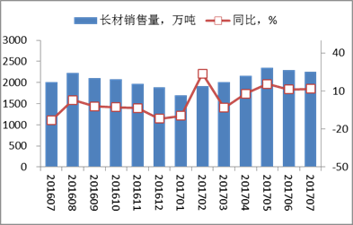 本月,重点钢铁企业销售长材2249.72万吨,比去年同期增加233.84万吨,上升11.60%;截止本月,本年累计销售长材14674.82万吨,累计比去年同期增加1063.19万吨,上升7.81%。