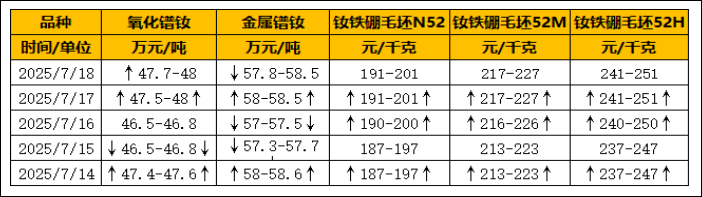 本周受上游稀土氧化物及金属价格大幅波动的影响,磁材企业在短暂小幅上调报价后,大多选择保持价格稳定并观望市场动态。进入下半周,由于原料价格持续在高位运行带来压力,磁材企业为应对原材料成本的上升,纷纷上调了产品报价。