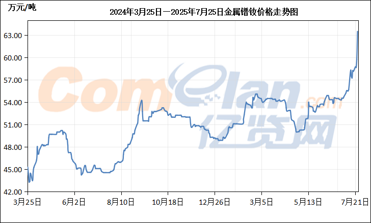 铽价格下调。周内氧化铽价格持续下滑,下游询单稀少,低价现货陆续报出,场内报价下滑,厂家出货不多,下游补货情绪不高,贸易商少量参与,当前氧化铽报价707-710万元/吨;金属铽价格下调,磁材订单一般,下游补货少量,金属厂报价下调,成交较少,金属铽报价875-880万元/吨。
