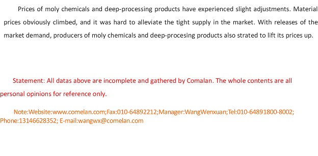 Comelan Molybdenum Weekly August 13--August 17, 2018